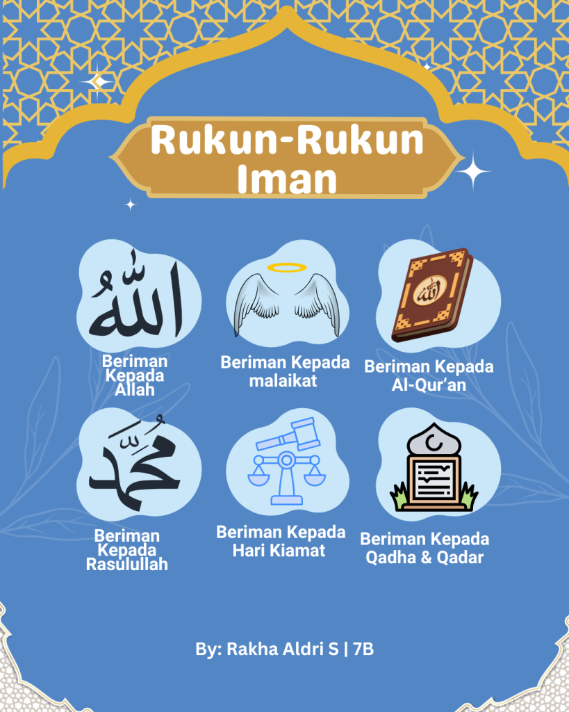 Assalamu’alakum wr wb Hello Everyone, This is my Dinniyah poster, The Pillars of Faith (Rukun Iman) are the six foundations of belief in Islam that every Muslim must believe in.