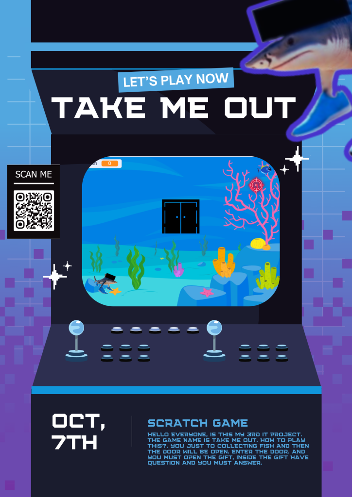 Next, the game is right below — it’s the Take Me Out game. I’m sorry if there are any errors in the game. In this game, you have to escape from the room and collect more than 20 fish. In the second room, you will find a baby shark, and there you have to answer its question.