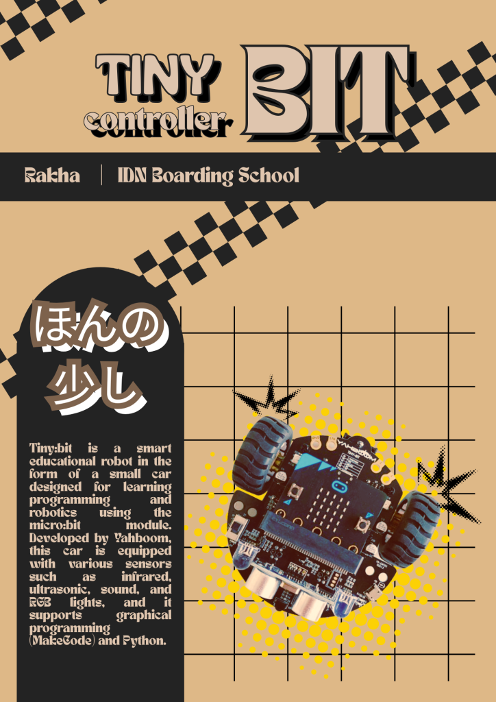 Tiny:bit is a smart educational robot in the form of a small car designed for learning programming and robotics using the micro:bit module. Developed by Yahboom, this car is equipped with various sensors such as infrared, ultrasonic, sound, and RGB lights, and it supports graphical programming (MakeCode) and Python.